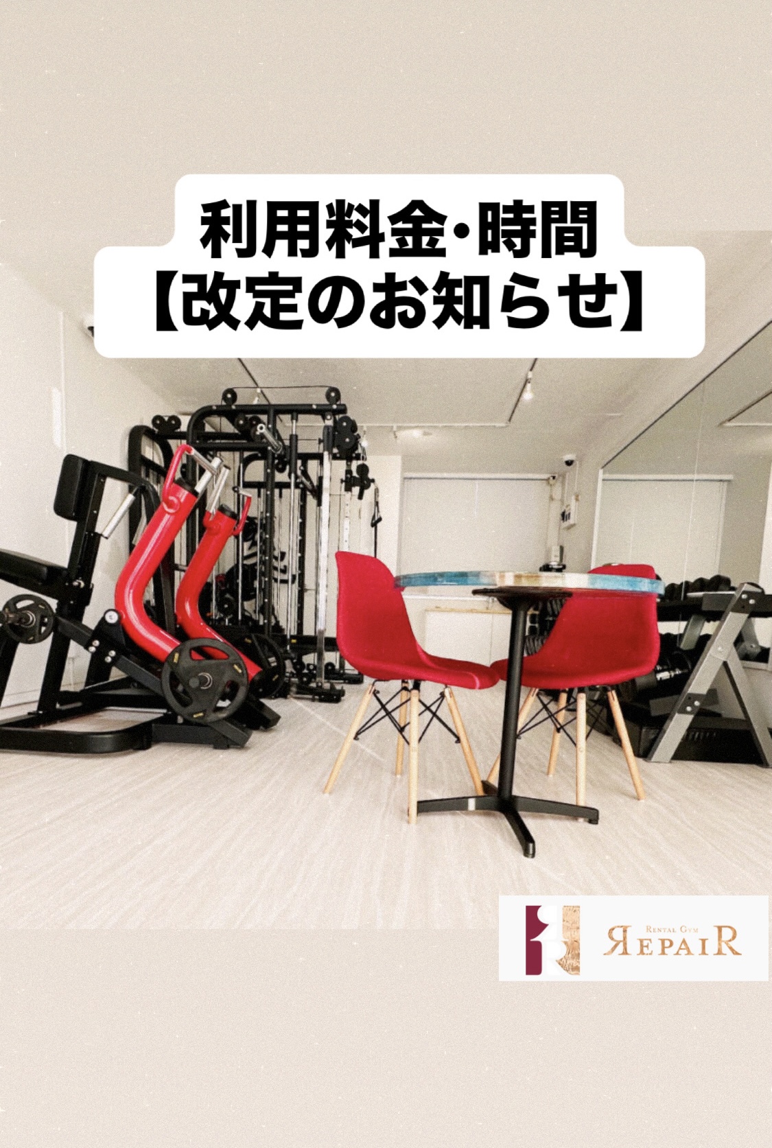 いつもレンタルジムリペアをご利用頂き、ありがとうございます。11月1日より利用規定が変更となり、料金や時間、利用人数が変更となります。