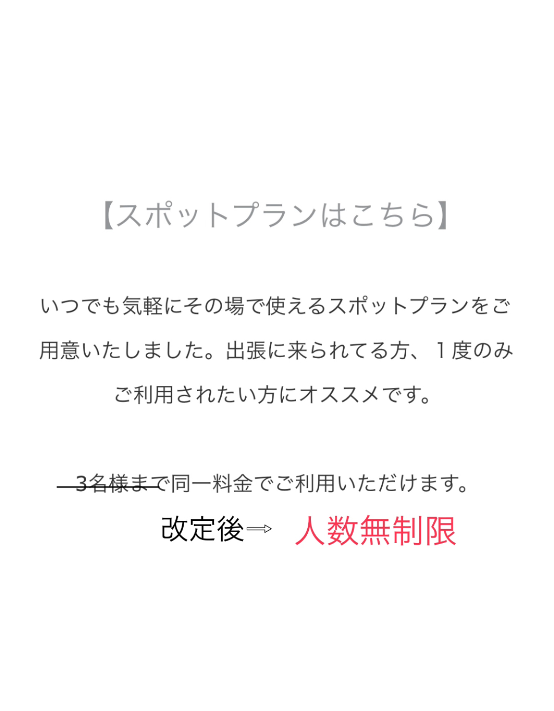 変更後は全ての利用時間に対し、一律1,000円UPとなります。なので、多くの人数で利用すれば、お一人の負担はかなりお安くご利用いただけます。